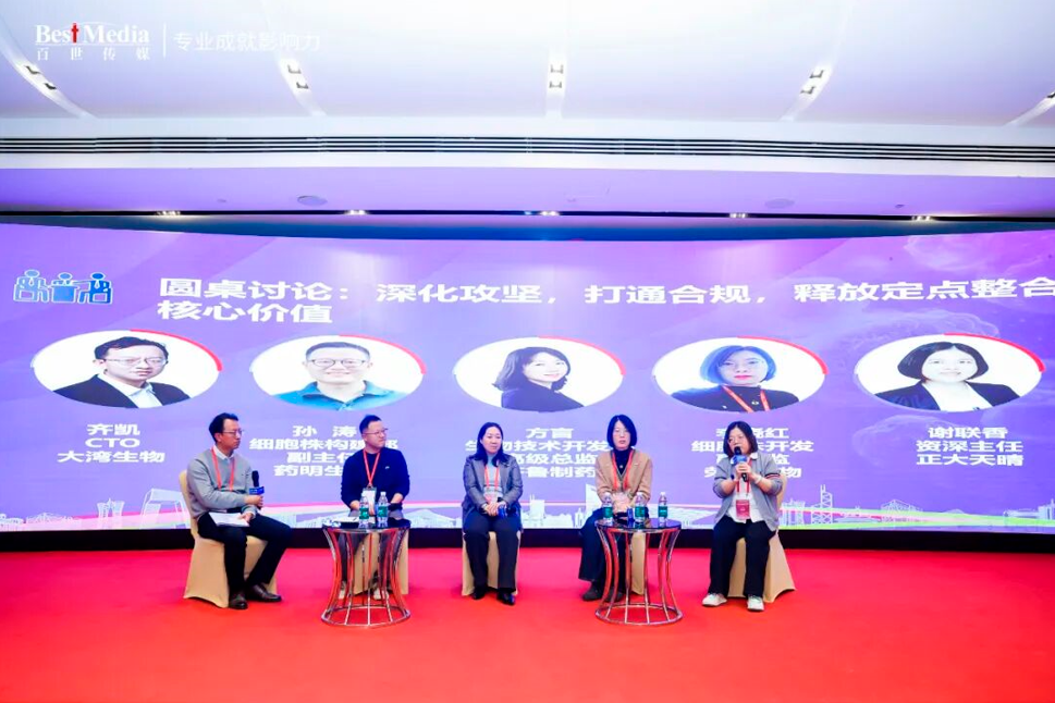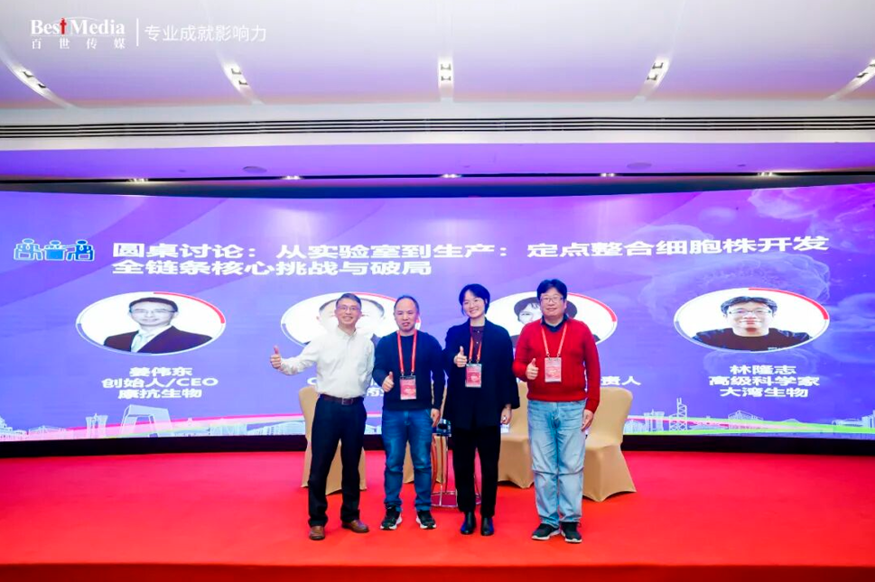 由大湾生物CTO齐凯主持,药明生物细胞株构建部副主任孙涛、齐鲁制药生物技术开发部高级总监方言、荣昌生物细胞株副总监李晓红、正大天晴资深主任/细胞株开发负责人谢联香等嘉宾共同参与。各位专家围绕定点整合技术在合规性建设、技术攻坚难点、产业化落地瓶颈等关键问题展开热烈讨论,分享各自企业的实践案例与解决方案,为行业打通技术产业化“最后一公里”提供宝贵经验。