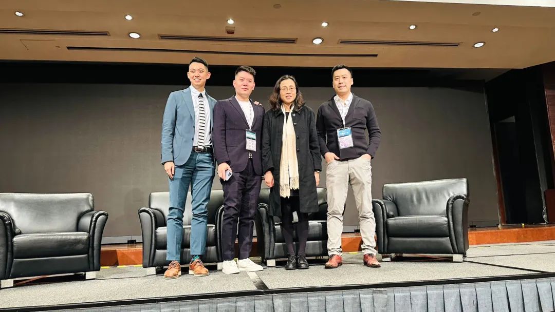 大湾生物董事长梁国龙(右一)与泰欣资本CEO Emmanuel Hui(左一)、泰欣资本合作伙伴Jack Wang(左二)、香港-深圳创新科技园运营总监Michelle Kam(右二)