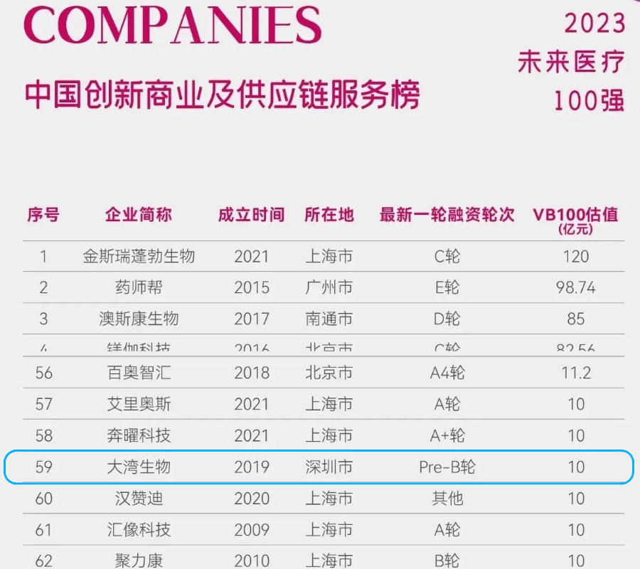 大湾生物跻身2023未来医疗100强•中国创新医疗商业及供应链服务榜TOP100榜单