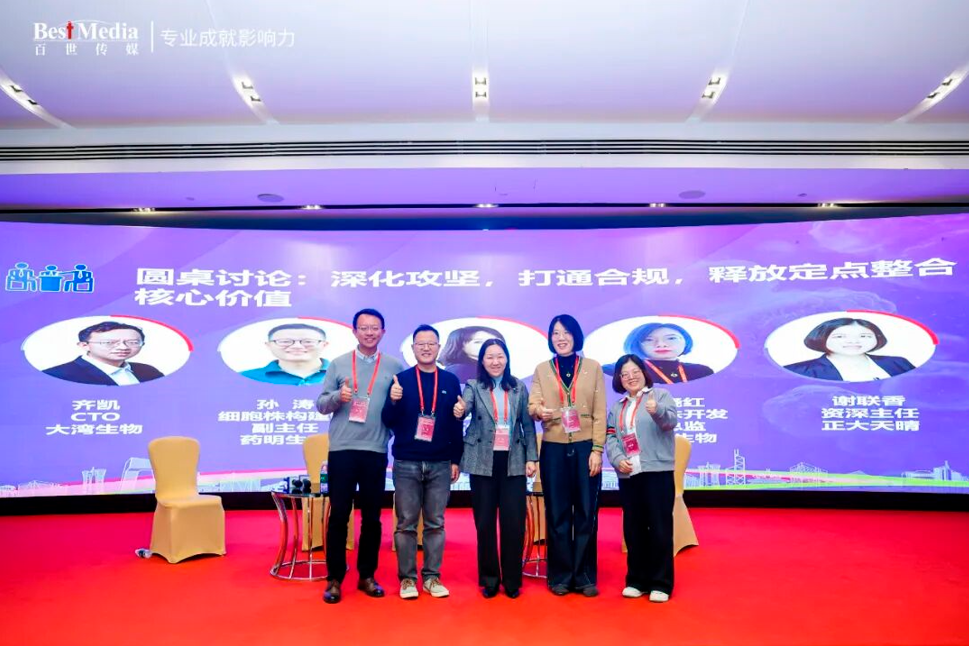 由大湾生物CTO齐凯主持,药明生物细胞株构建部副主任孙涛、齐鲁制药生物技术开发部高级总监方言、荣昌生物细胞株副总监李晓红、正大天晴资深主任/细胞株开发负责人谢联香等嘉宾共同参与。各位专家围绕定点整合技术在合规性建设、技术攻坚难点、产业化落地瓶颈等关键问题展开热烈讨论,分享各自企业的实践案例与解决方案,为行业打通技术产业化“最后一公里”提供宝贵经验。