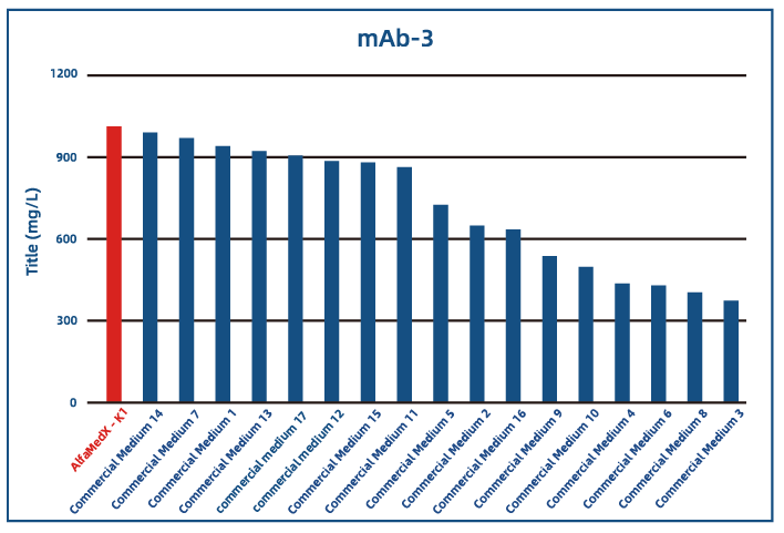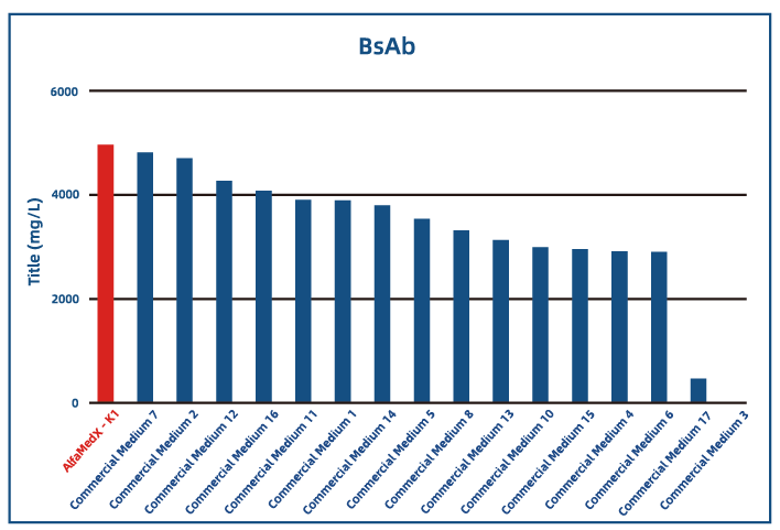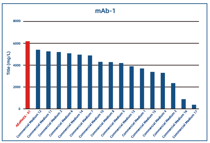 经实验数据对比,AlfaMedX K1目录培养基在CHO-K1细胞培养中,相较于市面上17家常用商业化培养基,在单抗、双抗、融合蛋白等产品的细胞株培养中,充分展现出“表达性能优异”与“适应性广”的核心优势。